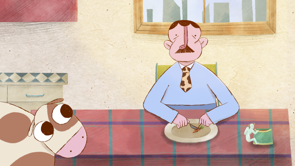 Edgars nimmt bei einem Ausflug auf einen Schlachthof ein Kalb mit nach Hause, als er erfährt, dass es als Schnitzel enden würde. Das Tier stellt sein