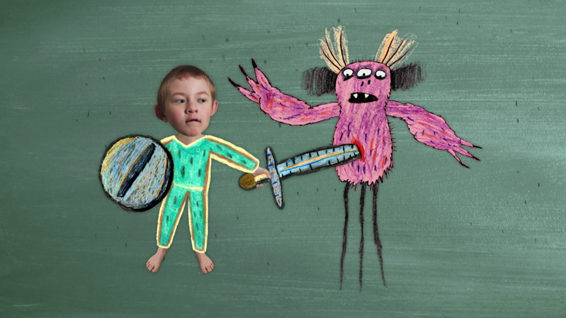 Tonda kämpft gegen ein Halsschmerzmonster.