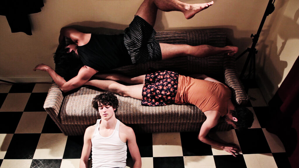 Ein kurzer Tanzfilm über das Warten. Ein flüchtiger Blick auf drei junge Männer, die auf ihre Wäsche warten.