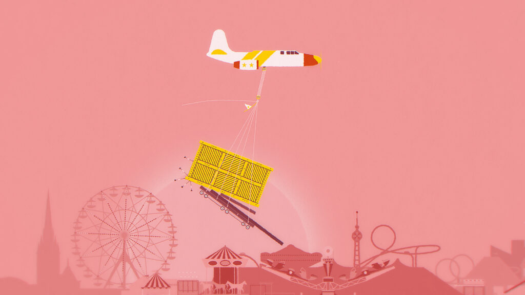 Was ist in der Kiste, der riesigen Kiste, die der Pilot aus einem weit, weit entfernten Land mitgebracht hat? Wahrscheinlich ein Elefant, denkt der Kapitän und lädt die Kiste ganz vorsichtig auf sein Schiff. Das Schiff taumelt und schlingert auf hoher See. Eine starke Böe reißt die Wände der Kiste knarrend auf. Und was ist in der Kiste? Noch eine Kiste!