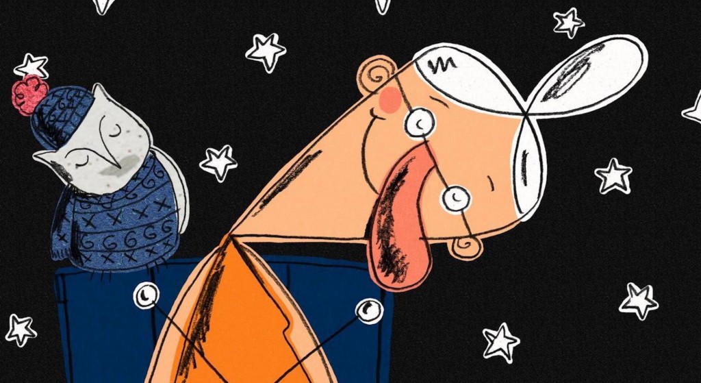 Eine alte Dame liebt das Stricken. Der Winter naht, da brauchen alle noch schnell etwas Warmes zum Anziehen. Und ganz besonders der Mond am kalten Sternenhimmel.