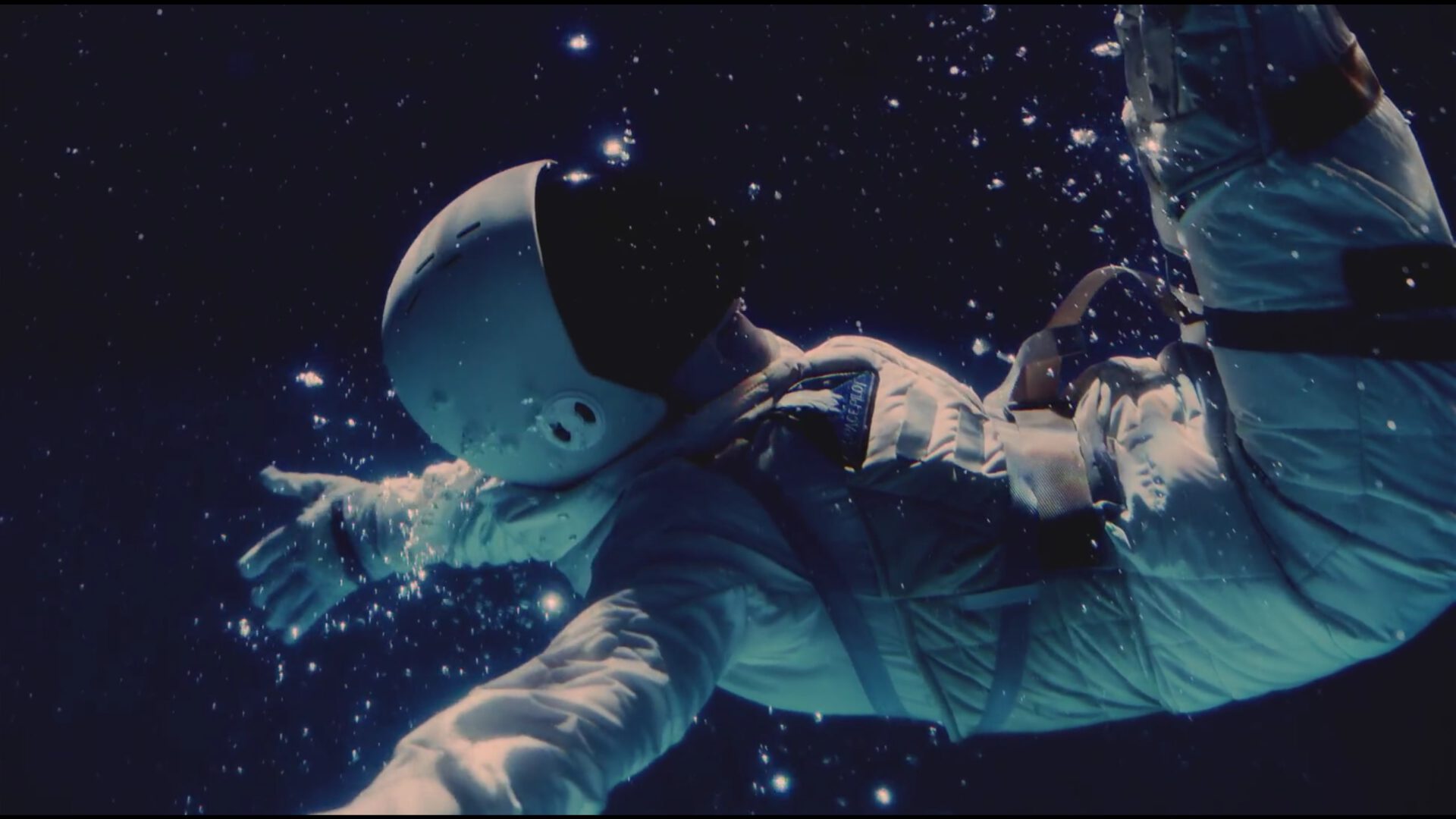 Luna ist im Schwimmbad und springt zum Mond.